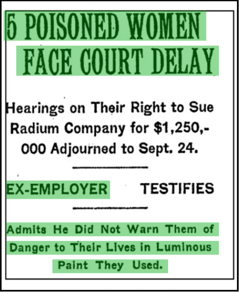 ("5 Women Dying of Radium Poisoning." Evening Star [Washington D.C], 13 May 1928, p. 14)