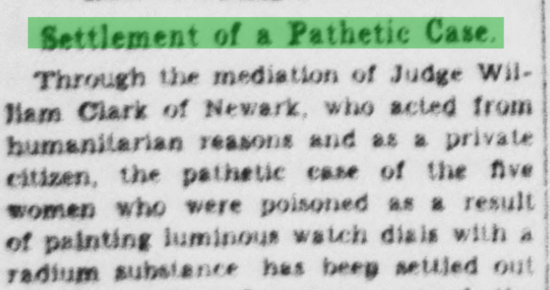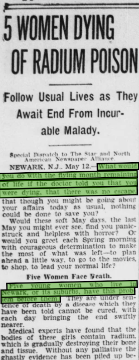 “Five young women who live in Newark, or its suburbs, have this problem before them.” ("5 Women Dying of Radium Poisoning.")