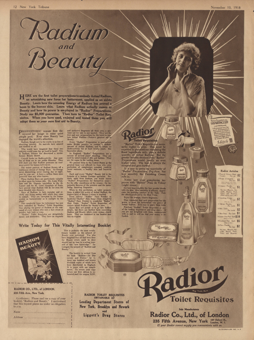After experts observed radium treating cancerous tumors, people wrongly assumed it could treat other diseases calling it a “miracle substance”.